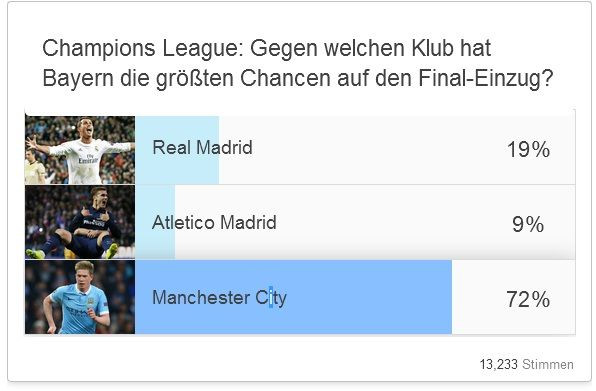 Intr-un sondaj postat de nemtii de la Bild pe site, fanii lui Bayern au fost pusi sa voteze cu cine ar vrea sa joace in semifinale.