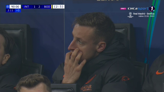 În finalul partidei, când era destul de clar că Inter va fi eliminată, toate camerele s-au concentrat pe Cristi Chivu.