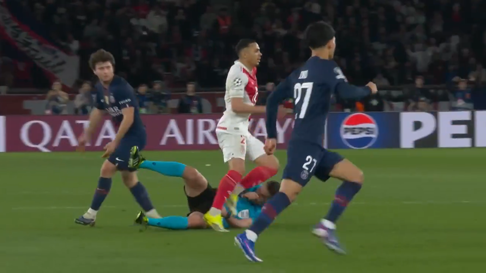 Era 1-0 în favoarea lui AS Monaco în acel moment, dar după eliminarea lui Coulibaly, balanța a înclinat în favoarea lui PSG, care a marcat rapid de două ori prin Marquinhos (minutul 60) și Kvaratskhelia (minutul 66).