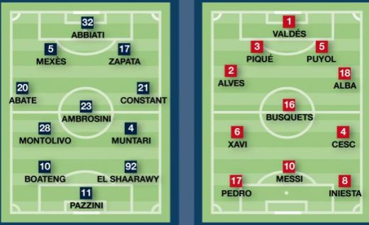 La ultimele doua dueluri in dubla masa, in Liga, Milan si Barca au facut 2-2 la Barcelona si 2-3 la Milano (2011, in grupe) cat si un 0-0 la Milano si 3-1 la Barcelona (2012, in sferturi, iar Barca a trecut in semifinale).