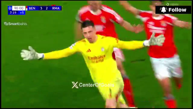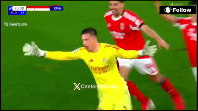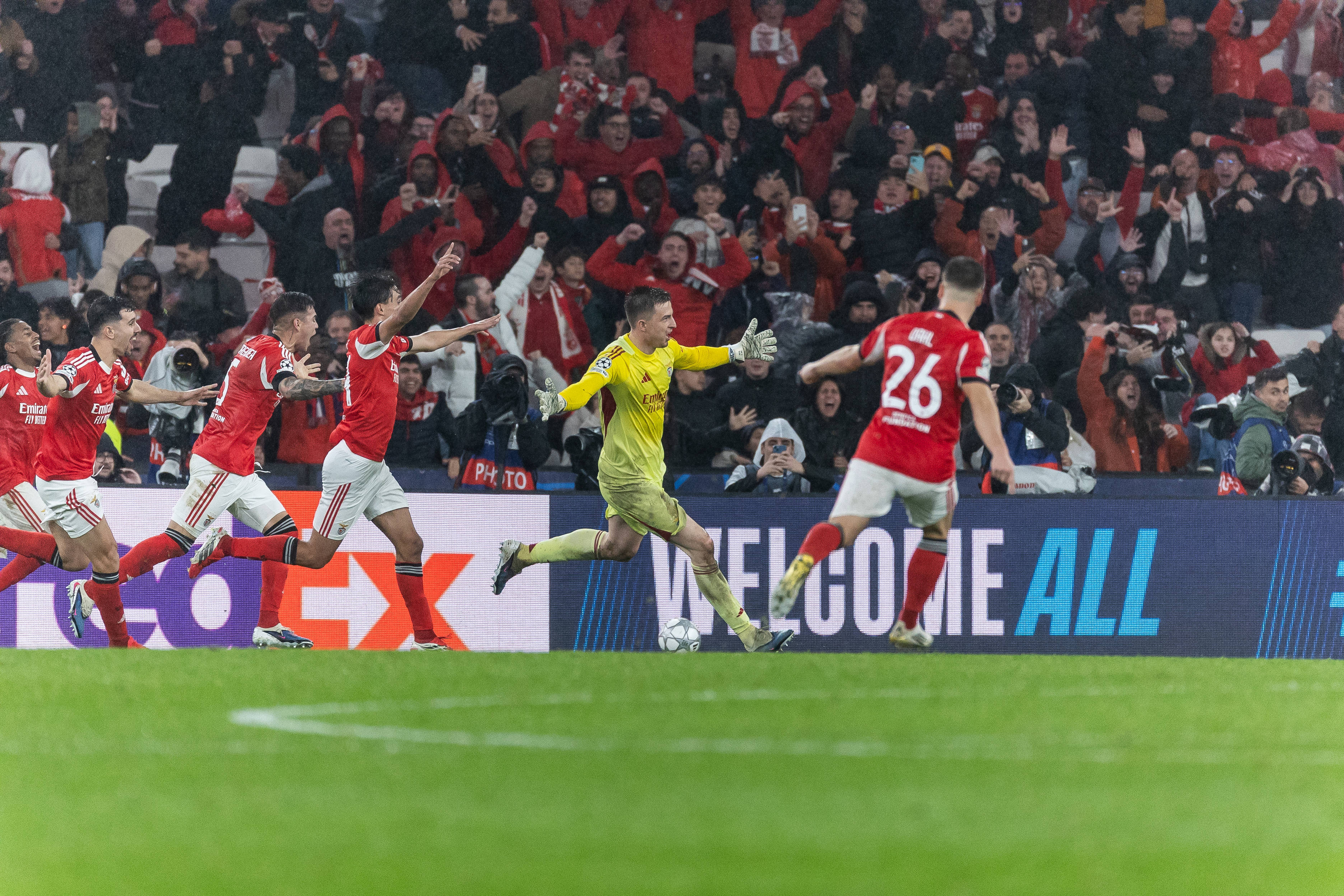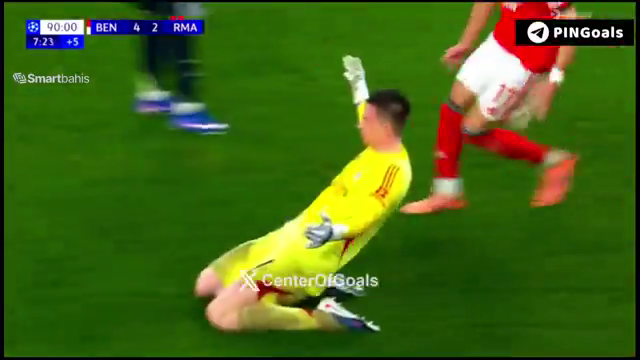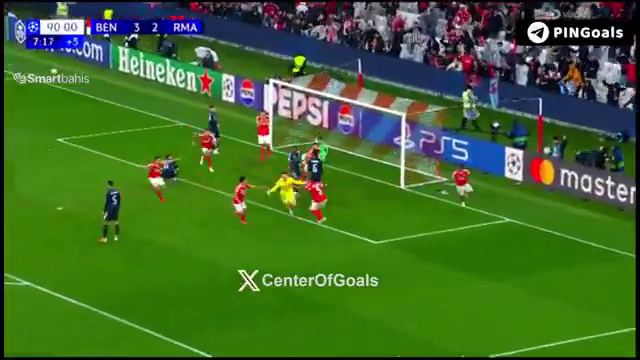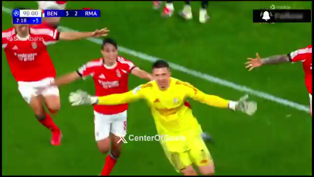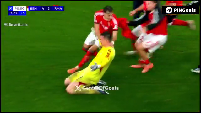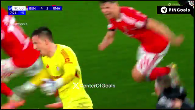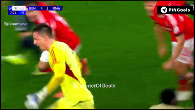 Real Madrid a rămas în inferioritate numerică, după eliminările lui Raul Asencio și Rodrygo, iar, în minutul 90+8, la ultima fază, Trubin a urcat în careul advers și a reluat cu capul, fără speranțe pentru Courtois, declanșând nebunia pe stadion. Benfica s-a impus cu 4-2 și și-a asigurat calificarea în play-off.