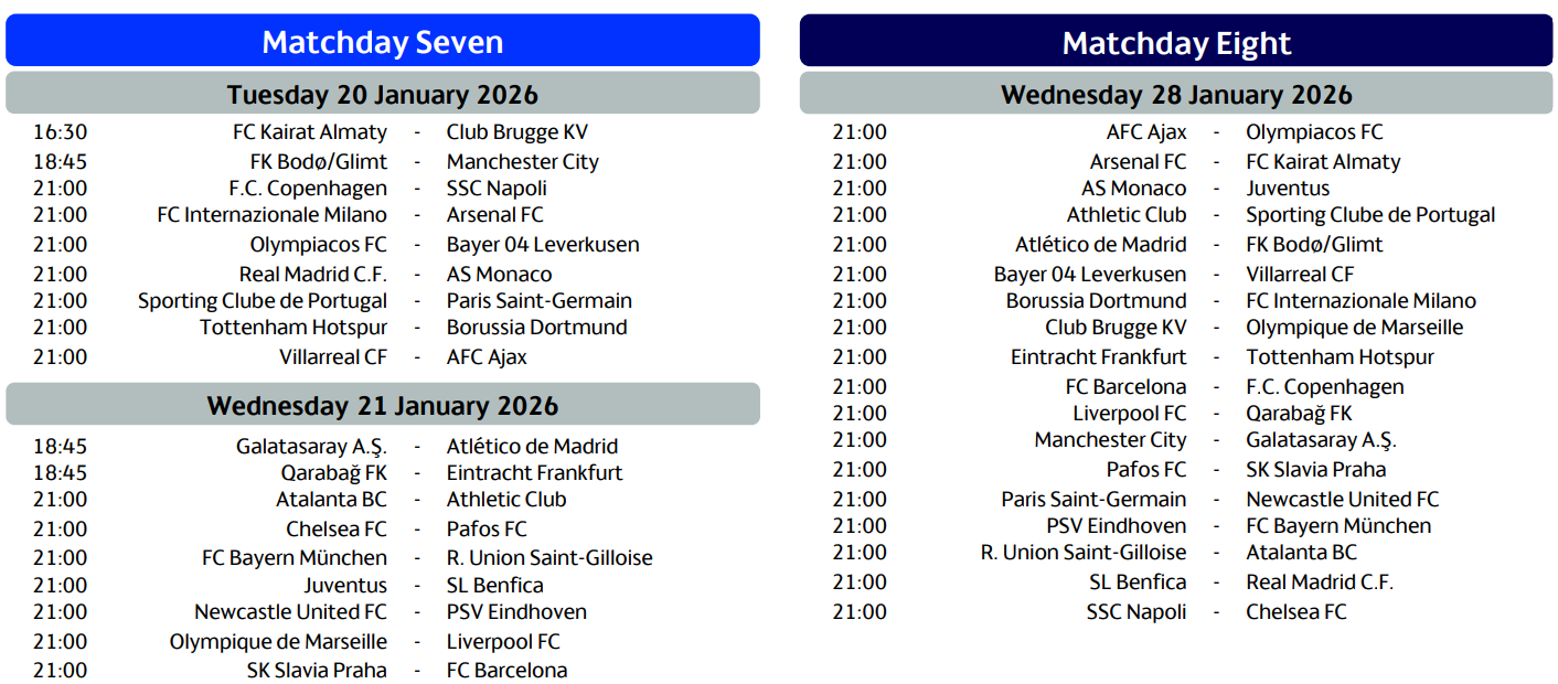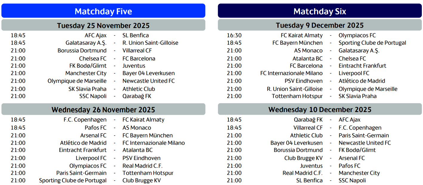 Ocupantele locurile 9-24 vor juca în dublă manșă play-off-ul pentru optimi, iar pozițiile 25-36 vor părăsi competițiile europene.