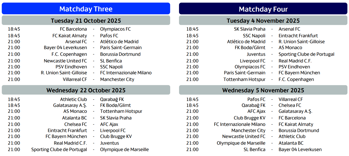 La două zile după tragerea la sorți pentru stabilirea meciurilor din faza principală, UEFA a anunțat și programul din grupa XXL.