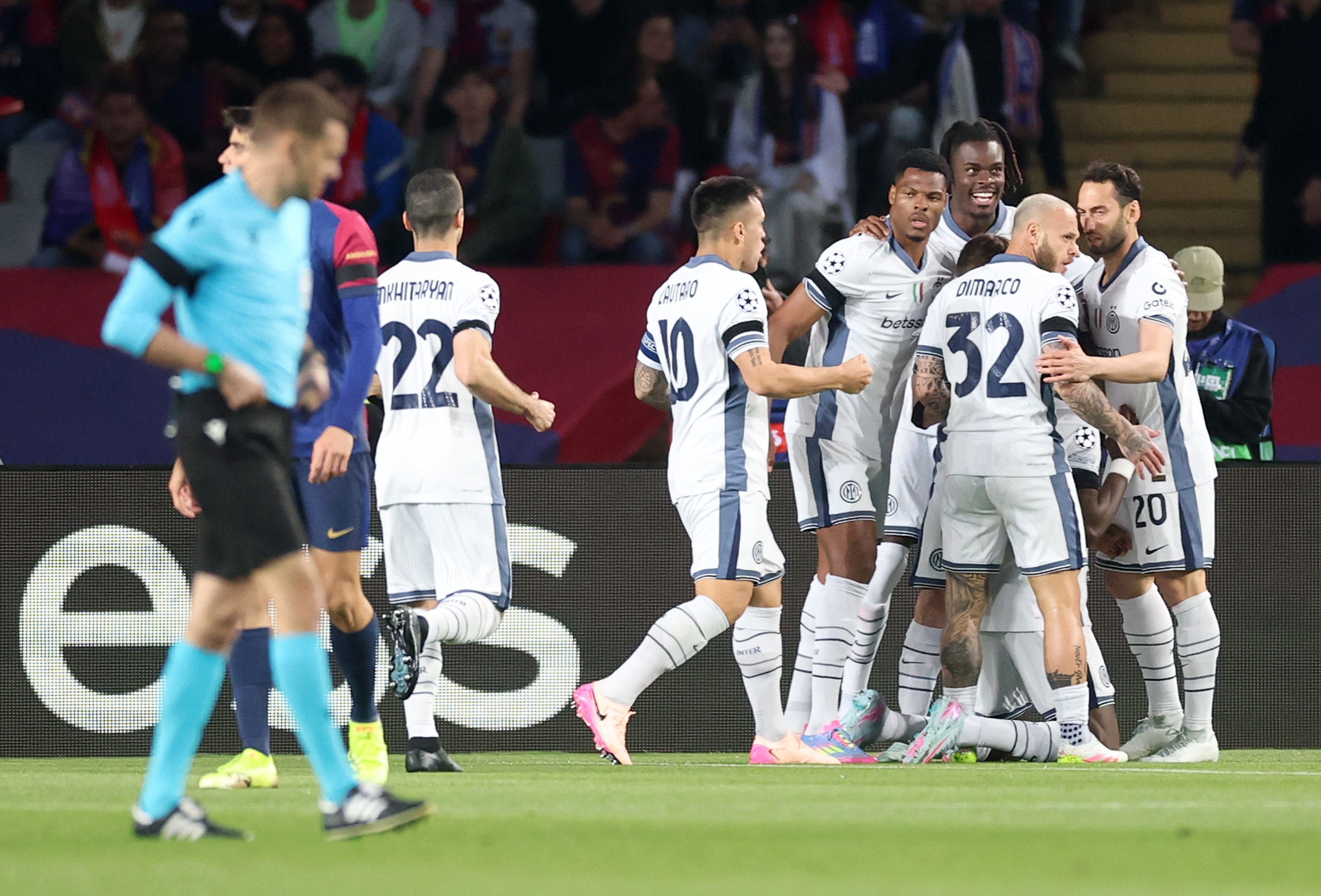 Inter a deschis scorul încă din secunda 30, după golul lui Marcus Thuram, iar echipa lui Simone Inzaghi și-a dublat avantajul în minutul 21 prin Denzel Dumfries. Barcelona a reușit să egaleze până la pauză prin golurile lui Lamine Yamal, care a avut o nouă evoluție încântătoare, și Ferran Torres.
