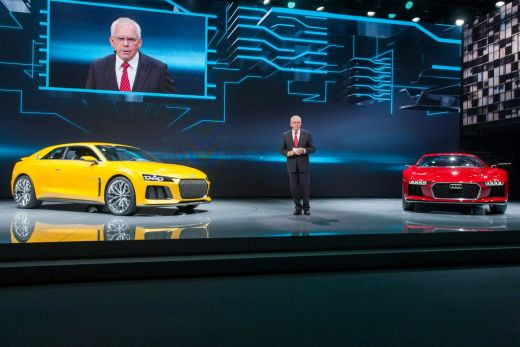 ►Audi a dezvelit Sports Quattro Concept, un tribut pentru istoria fabuloasa a lui Quattro in raliuri, care implineste 30 de ani. Masina are 691 de cai si cutie cutie tiptronic in opt trepte. Momentan nu se stie daca ea va intra vreodata in productie, in ciuda entuziasmului de la Frankfurt.