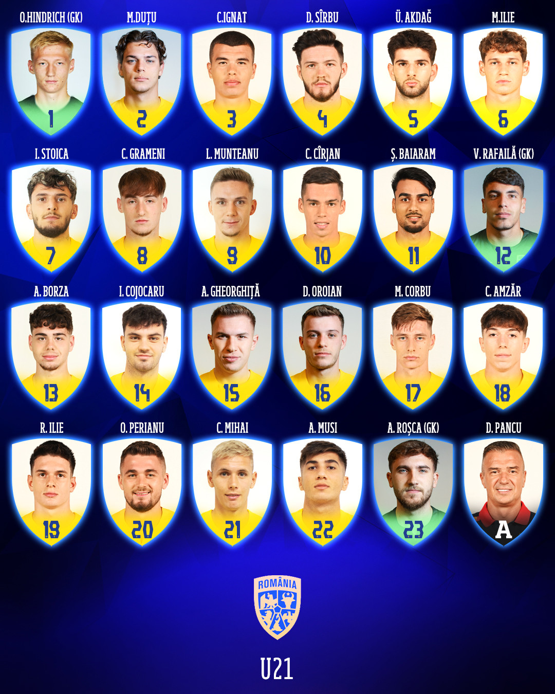 PORTARI: Otto Hindrich (CFR Cluj), Alexandru Roșca (Dinamo), Vlad Rafailă (US Lecce / Italia);