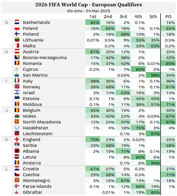 În acest context, calculele actualizate de platforma Football Meets Data, după mecurile de luni, demonstrează că am spulberat San Marino, însă, în continuare, avem a treia șansă în grupa H. Iar asta din cauza înfrângerii de la București, cu Bosnia.