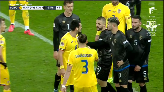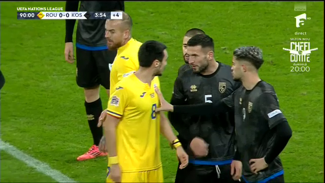 Deși faza a părut rezolvată de arbitru, Amir Rrahmani s-a dus ulterior la arbitru și i-a transmis că naționala din Kosovo se retrage la vestiare. Căpitanul oaspeților a părut extrem de deranjat de comportamentul spectatorilor români, însă fără a fi clar la ceea ce se referă.