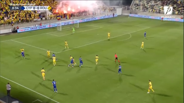 Min.40 OCAZIE ROMÂNIA! Mihăilă șutează din careu, cu exteriorul, dar Mall nu pleacă pe fentă și respinge. Râmâne 0-3, cu un joc dezinvolt al tricolorilor care profită de spațiile mari lăsate de ciprioți.
