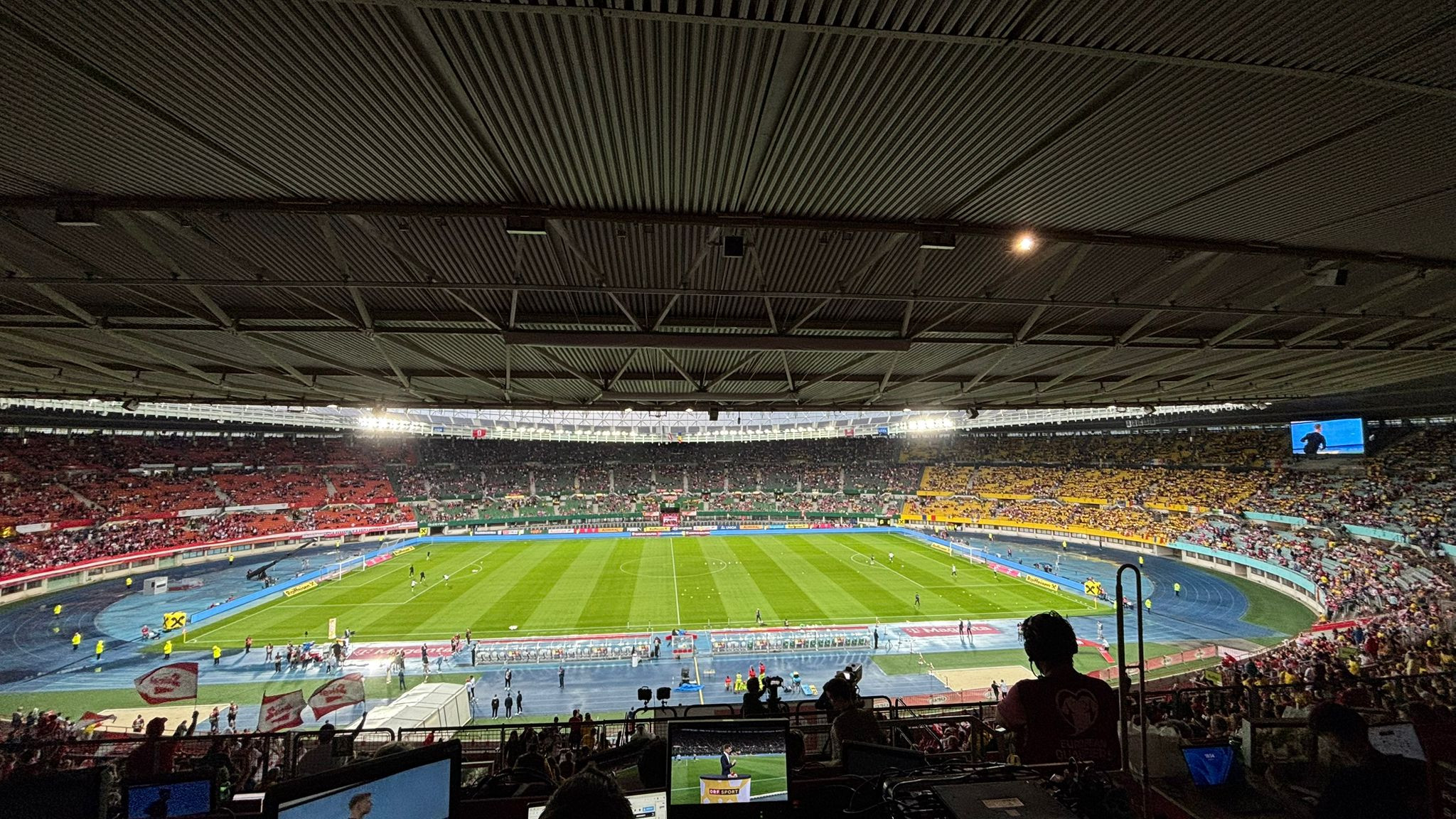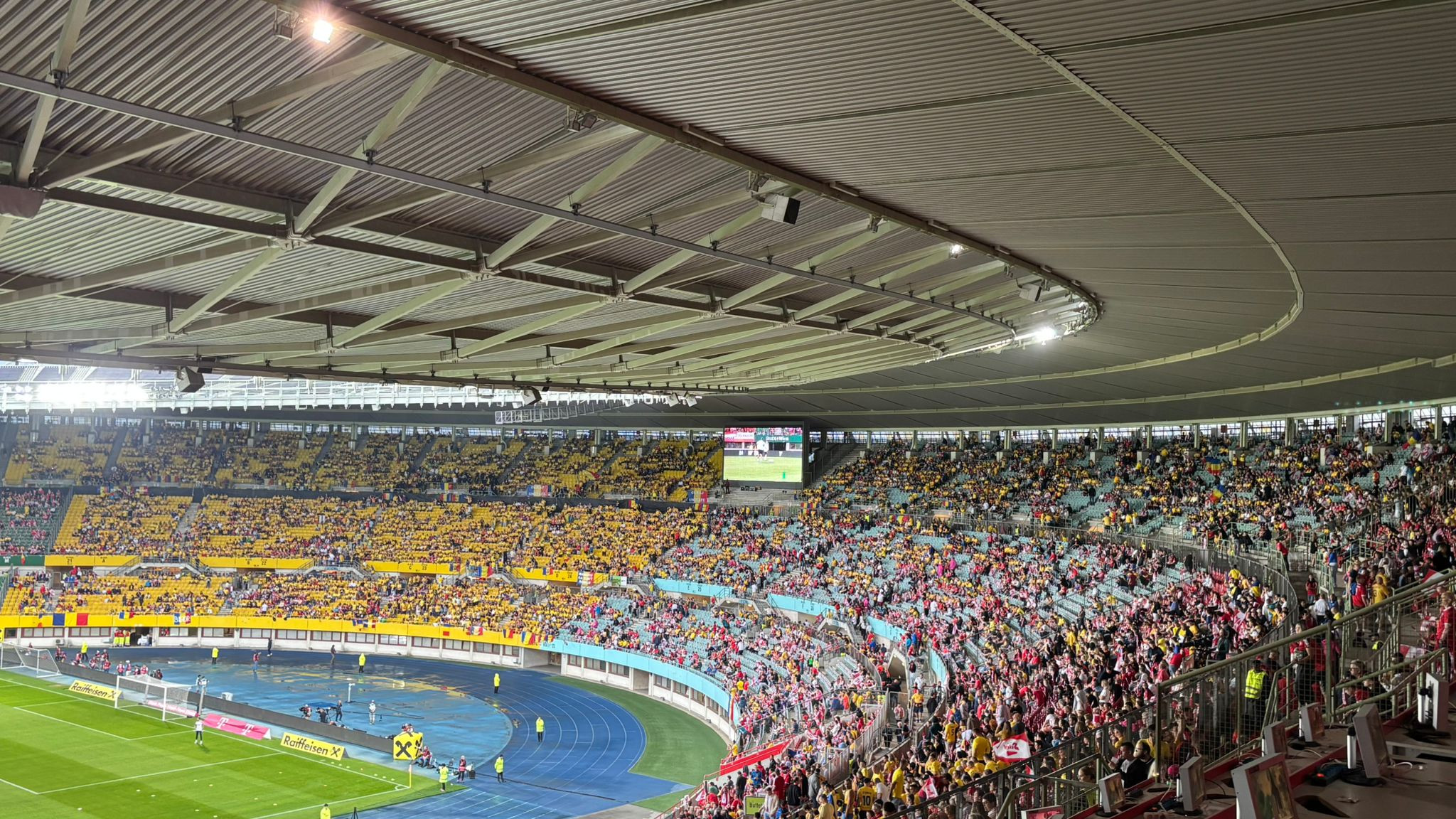 ”Tricolorii” vor fi încurajați de un număr semnificativ de fani pe arena care are o capacitate de 50.865 de locuri. Cu o oră înainte de startul partidei, stadionul s-a umplut până la aproape jumătate din capacitate.