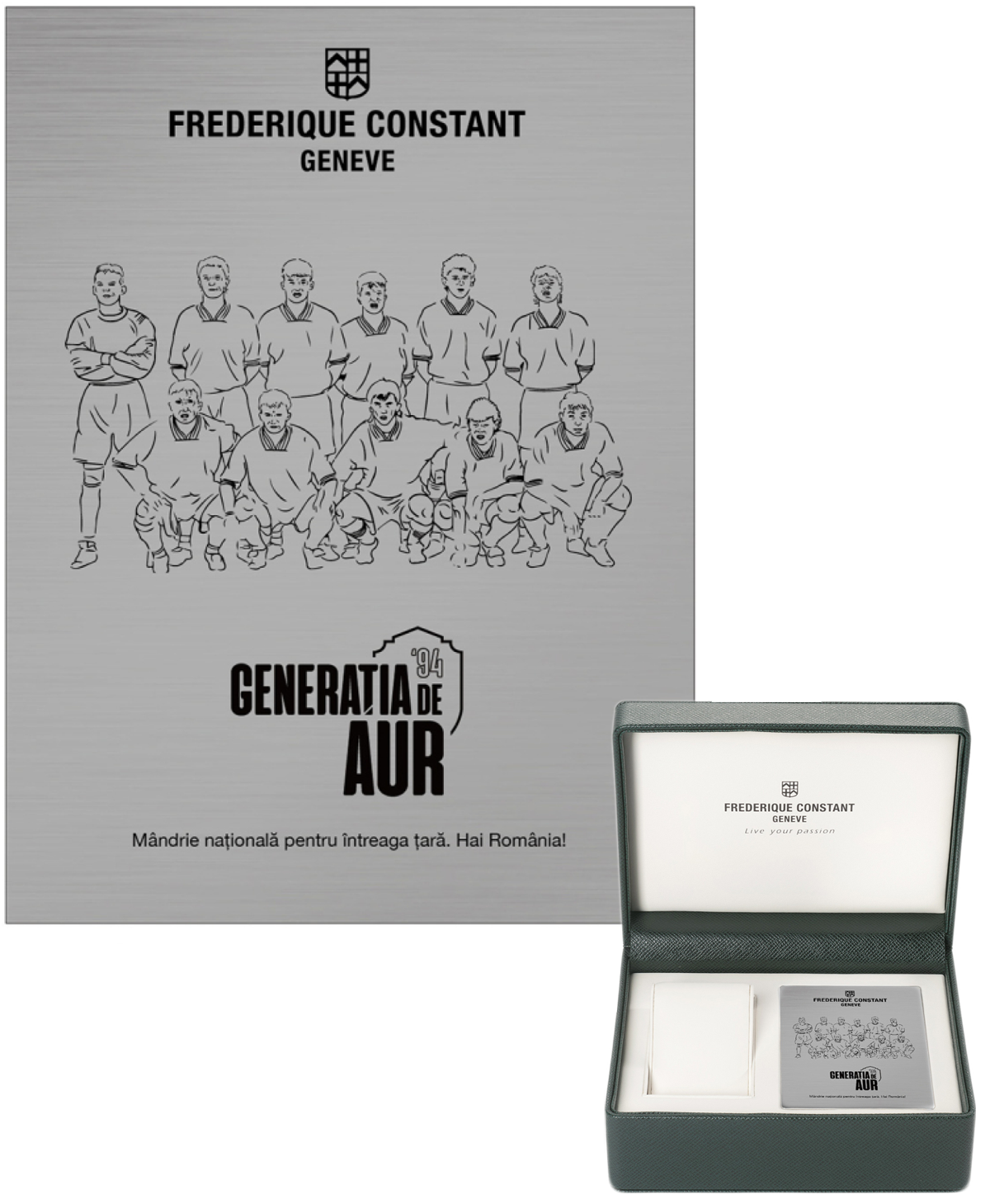 Cadranul galben ne amintește de culoarea tricourilor purtate de echipă, fiind completat subtil de modelul unei mingi de fotbal, cât și de inscripția anului 1994. Vine cu o curea din cauciuc adițională și cu o plăcuță metalică gravată cu silueta echipei de fotbal a României".