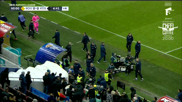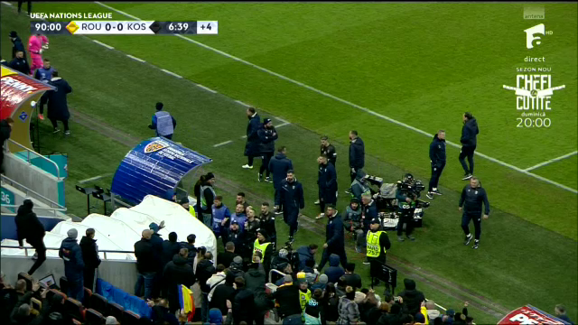 Deși faza a părut rezolvată de arbitru, Amir Rrahmani s-a dus ulterior la arbitru și i-a transmis că naționala din Kosovo se retrage la vestiare. Căpitanul oaspeților a părut extrem de deranjat de comportamentul spectatorilor români, însă fără a fi clar la ceea ce se referă.