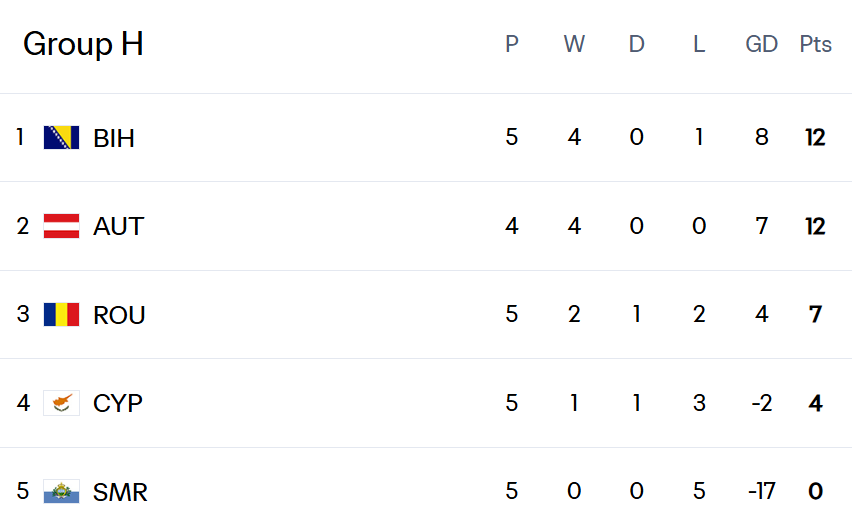 Cu patru victorii în cele patru meciuri disputate până acum în grupa H din preliminariile CM 2026, Austria vizează încă 6 puncte la acțiunea din această lună pentru a mai face un pas spre câștigarea grupei și calificarea directă la turneul final. Trupa lui Ralf Rangnick are programate meciuri cu San Marino (acasă, joi) și România (deplasare, duminică).