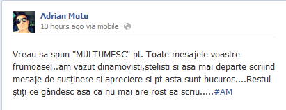 Mutu s-a suparat rau. Chiar daca n-a avut o reactie publica pana acum, 'Briliantul' s-a consumat in ultimele zile. Azi-noapte a intrat pe Facebook pentru a le transmite fanilor sai un mesaj. Stelistii si dinamovistii s-au unit pentru a-l cere la nationala, iar Mutu a vrut sa le multumeasca.