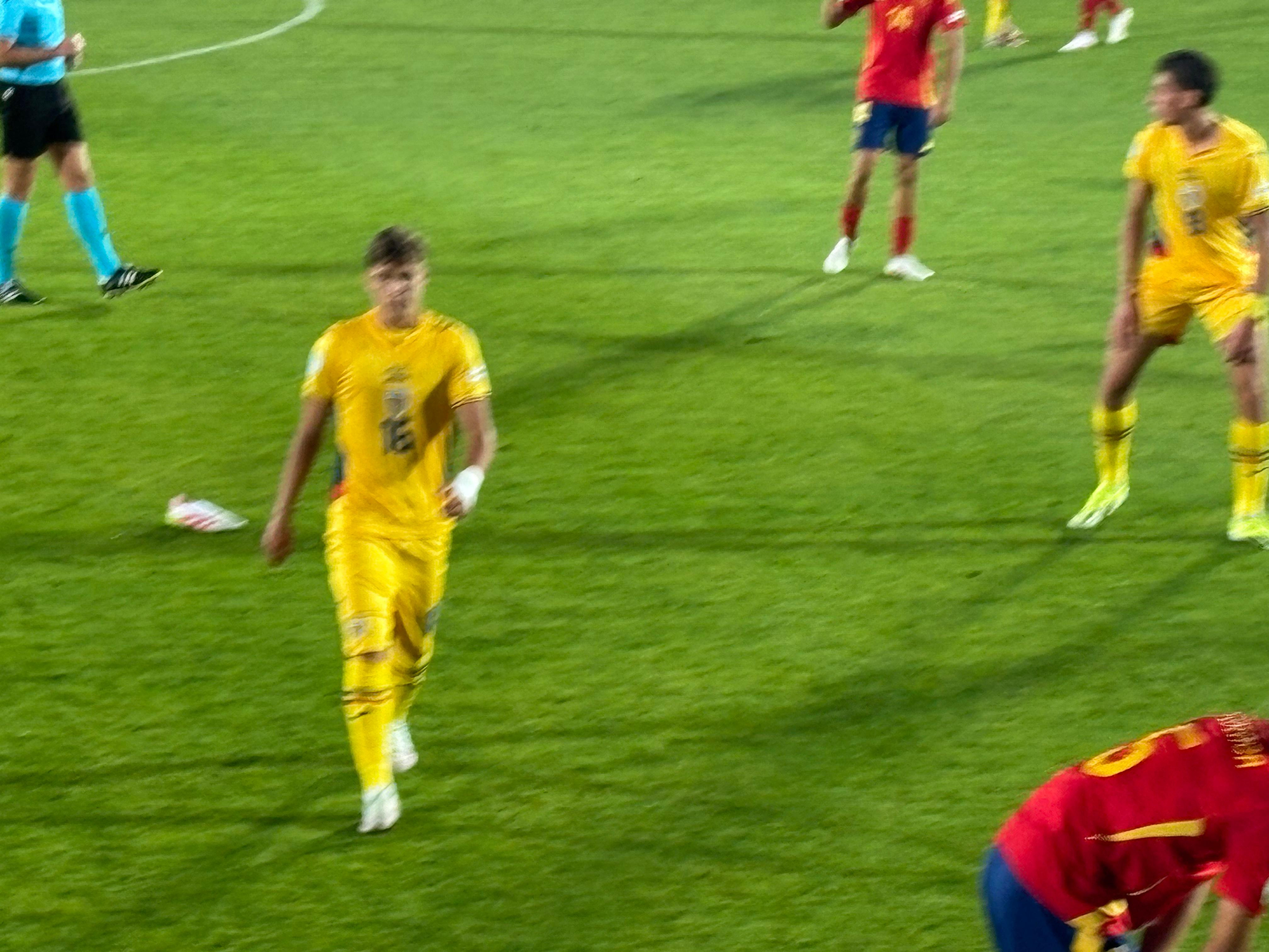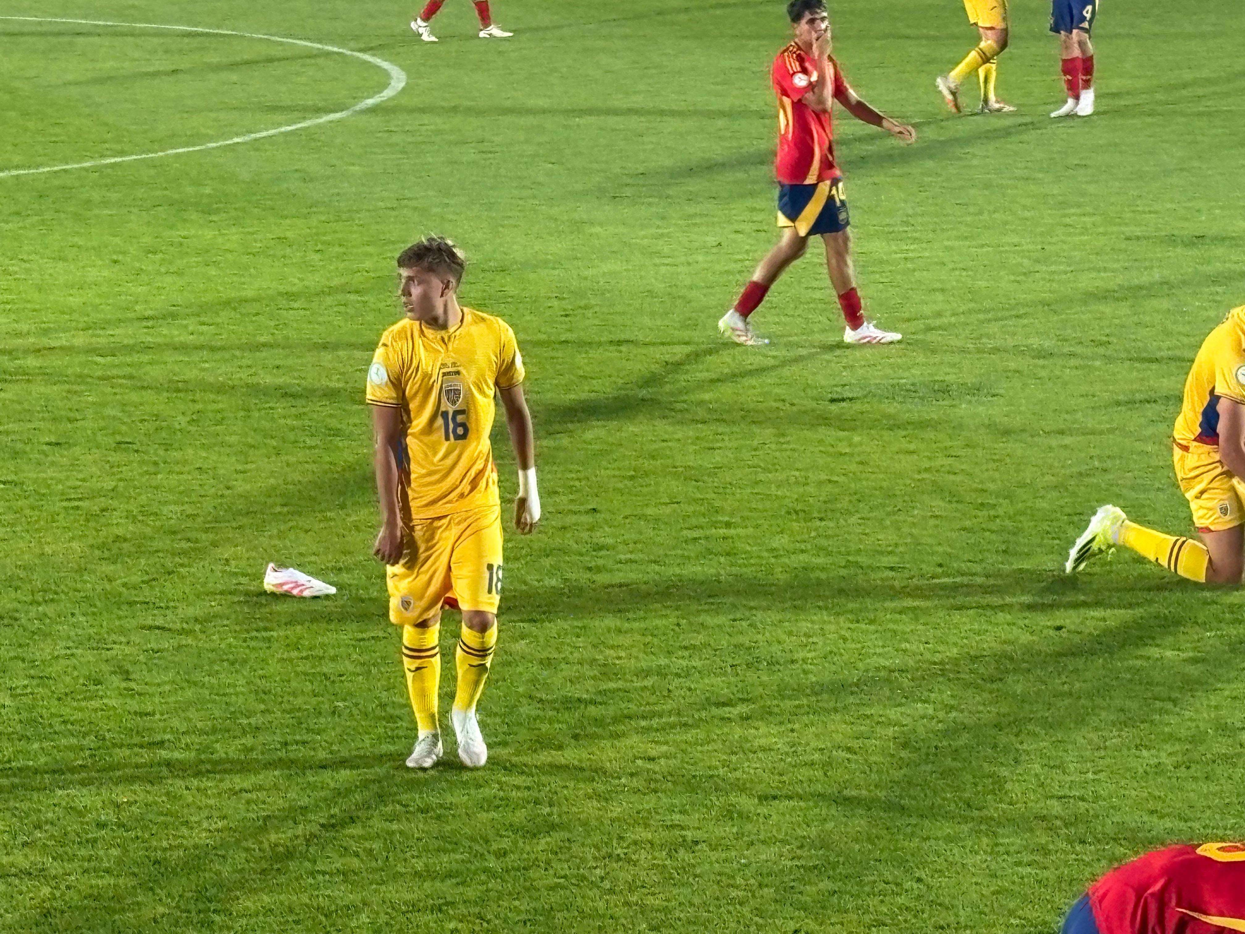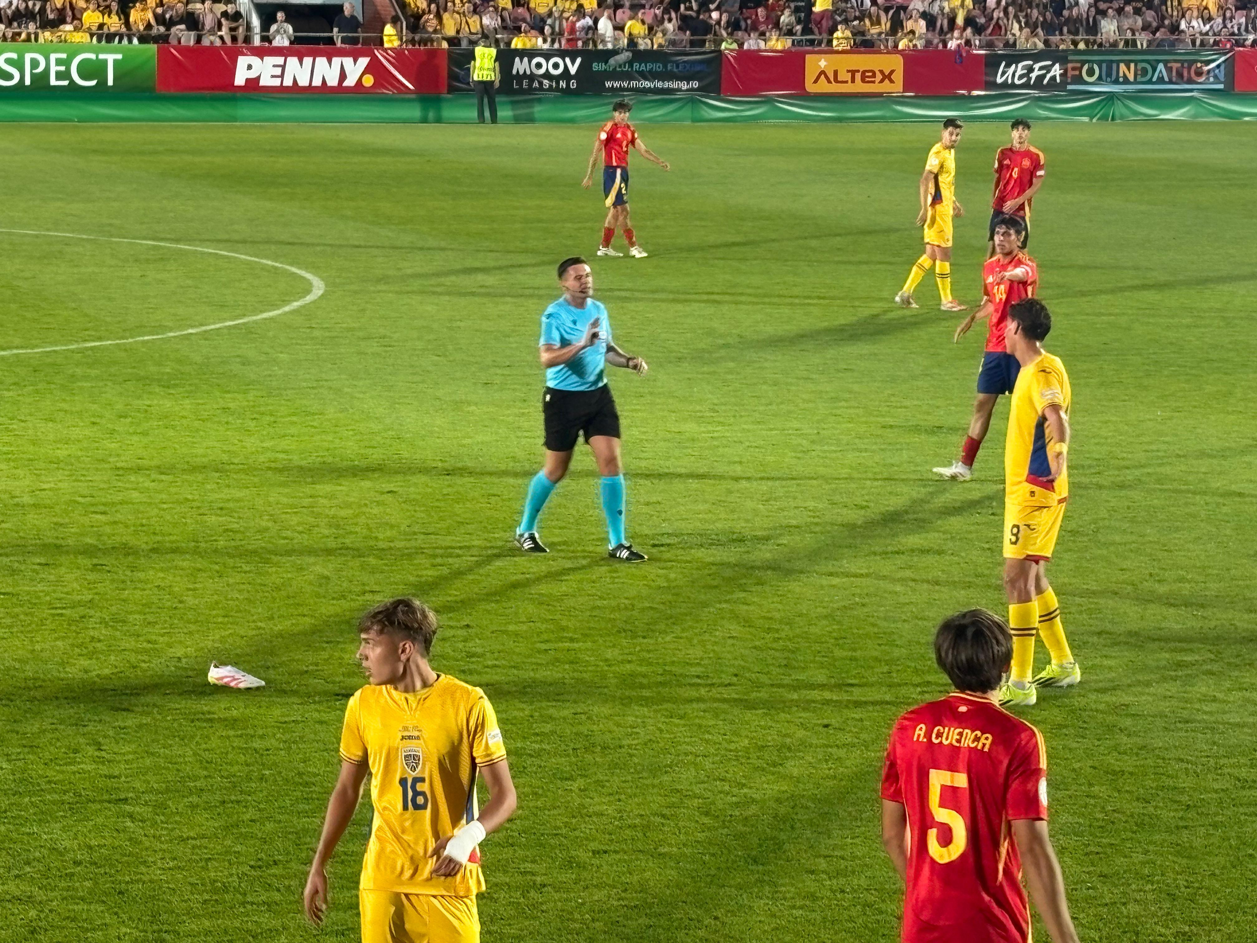 Naționala U19 a României joacă în aceste momente cu Spania, într-un meci decisiv pentru calificarea în fazele eliminatorii. Stadionul „Anghel Iordănescu” este plin-ochi, toate cele 4.600 de bilete fiind epuizate, iar atmosfera este una de meci mare.