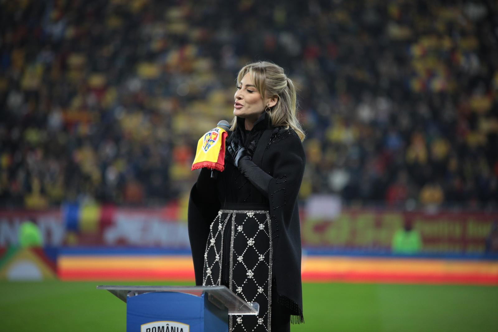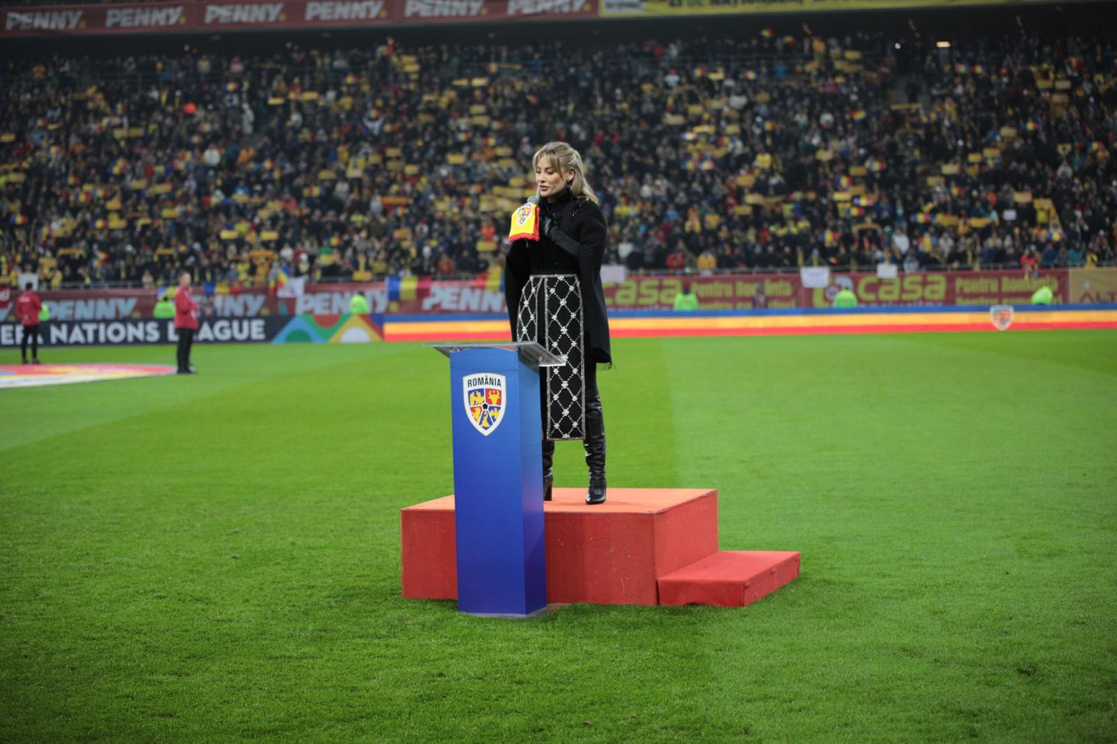 Ulterior, soprana Irina Baianț a interpretat imnul României în fața celor aproape 50.000 de suporteri ai tricolorilor.