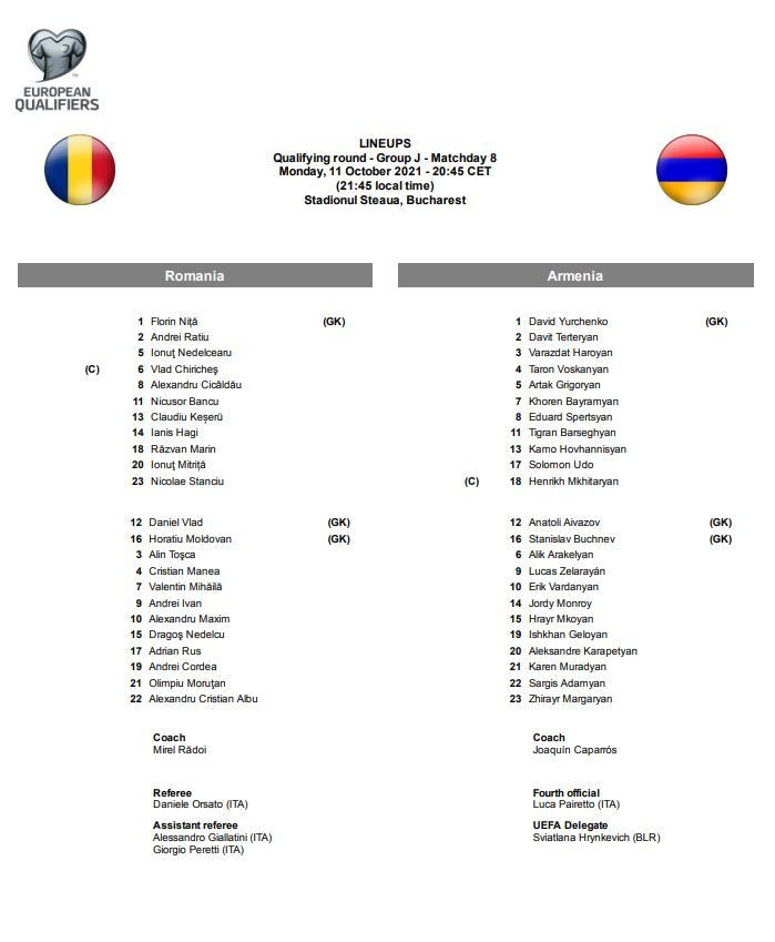 11:00 UPDATE Citește aici totul despre naționala Armeniei.