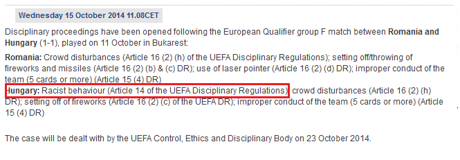 Ungurii sunt recidivisti, jucand deja cu tribunele inchise impotriva Romaniei, anul trecut, si pot primi o lovitura dura din partea UEFA. Urmatoarele etape acasa ale ungurilor sunt cu Finlanda, Grecia si Romania, acestia urmand a primi cel mai probabil 2 etape de suspendare!