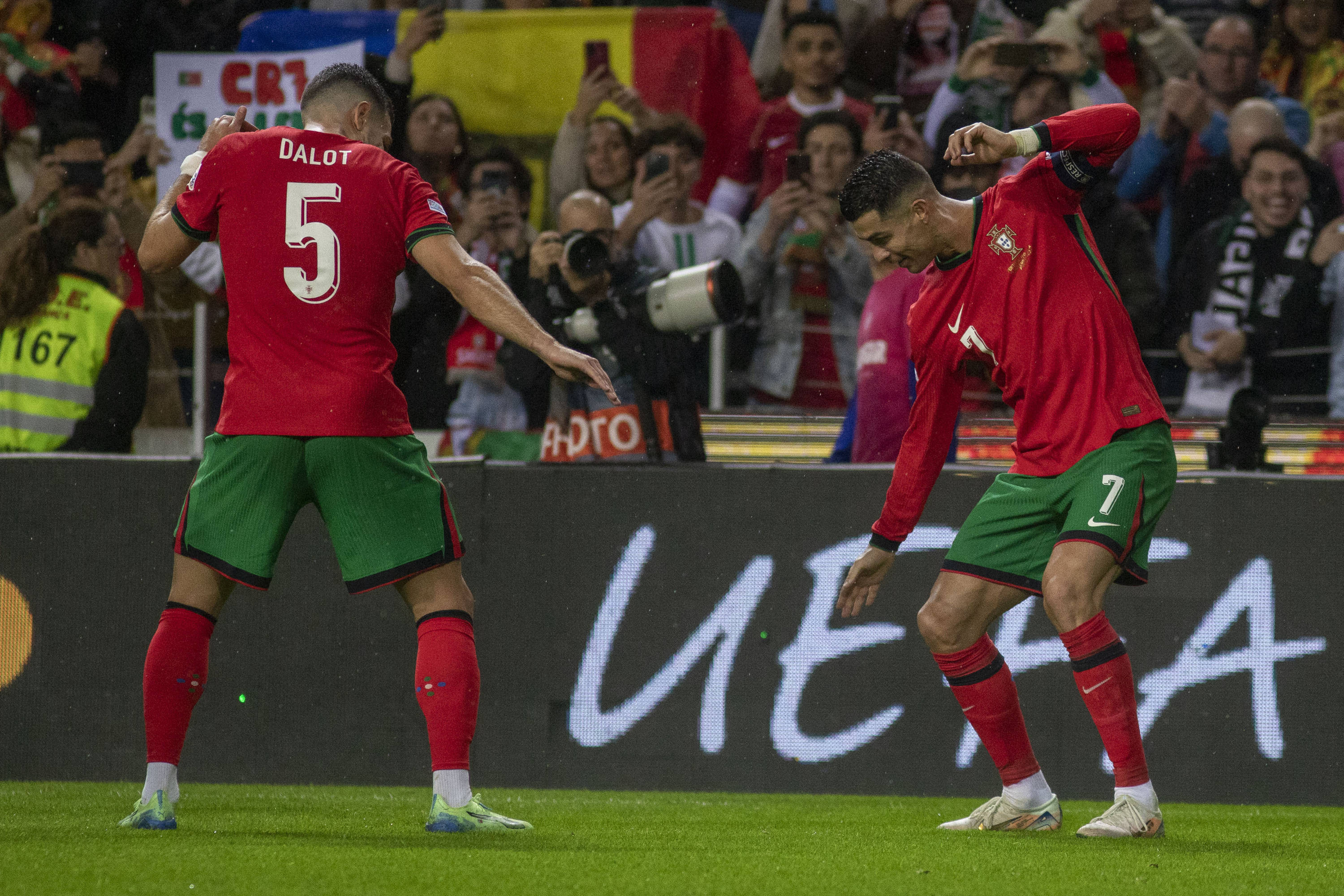 Bruno Fernandes și Pedro Neto au înscris și ei în minutele 80, respectiv 83, iar golul serii i-a aparținut lui Cristiano Ronaldo. în minutul 87, veteranul lusitanilor a primit o centrare de la Vitinha și a înscris cu o execuție acrobatică din careul mic.