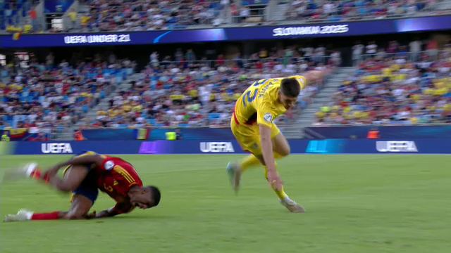 Minutul 87: Ianis Stoica face un tackling senzațional în stînga defensivei noastre, se ridică să continue faza, dar se pune la pământ, sugerând o accidentare. E scos în afara terenului, următoarea fază jucăm 9 contra 11 și luăm golul de 1-2! Să te zgârii pe ochi, nu alta!