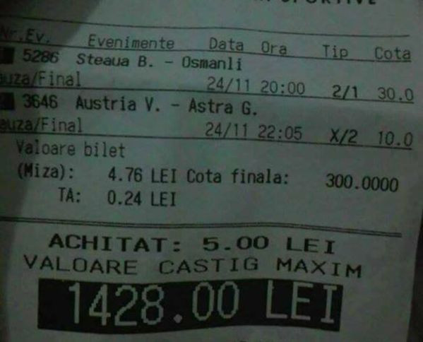 Un suporter roman s-a dovedit a fi cat se poate de inspirat. Acesta a mizat pe victoriile echipelor romanesti, insa nu oricum, ci a prezis si rezultatele la pauza.