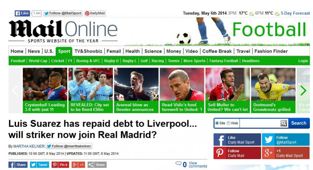 Presa din Anglia ofera un scenariu incredibil! Dailymail scrie ca Luis Suarez ar putea trece la vara pe Bernabeu, pentru 90 de milioane de euro, triplul sumei pentru care a venit de la Ajax pe Anfield.