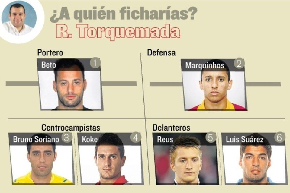 Ricard Torquemada, ziaristul celor de la Sport, l-a trecut pe postul de portar pe Beto de la Sevilla, in timp ce majoritatea l-au ales pe Courtois sau chiar pe Reina. Alaturi de Beto, pe lista jurnalistului catalan se mai afla si Marquinhos, Bruno Soriano, Koke, Reus si Luis Suarez.