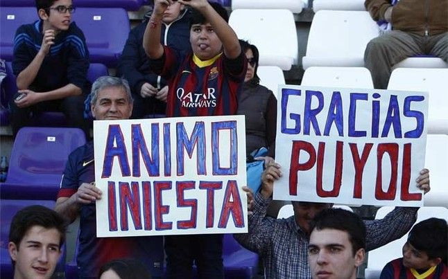 La meciul cu Valladolid, fanii catalani au afisat mesaje emotionante in tribune fata de Iniesta si Puyol.