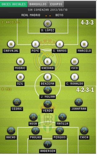 Real: Diego López; Carvajal, Pepe, Ramos, Marcelo; Khedira, Modric; Özil, Isco, Cristiano; Benzema