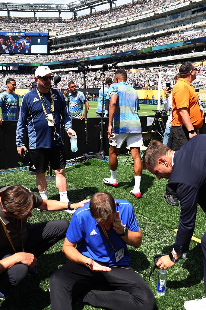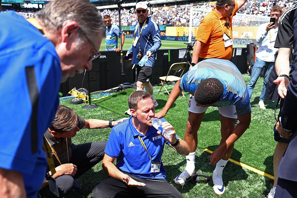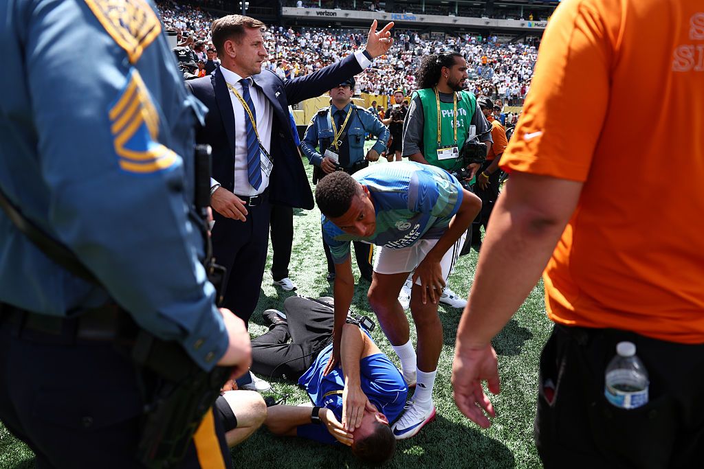 Fotografii aflați pe marginea terenului au surprins continuarea. Mbappe s-a dus direct spre voluntarul respectiv să vadă cum se simte. Atacantul lui Real Madrid i-a oferit acestuia o sticlă de apă, iar apoi s-a întors la încălzire. Dar nu înainte de a se asigura că voluntarul se simte bine.