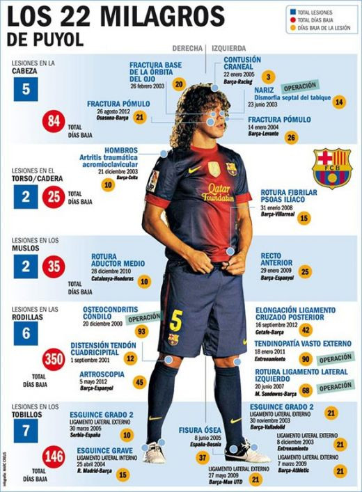 Puyol pare un jucator ghinionist, daca ne uitam cat de mult a stat pe banca pana acum. Toate loviturile l-au facut mai puternic, dar cariera sa pare DRAMATICA.