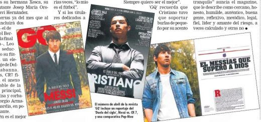 "Un Mesia care l-a depasit pe Dumnezeu, un geniu al balonului", este caracterizat Messi de GQ, in timp ce Ronaldo este "Regele Ronaldo, un baiat cu o personalitate de exceptie".