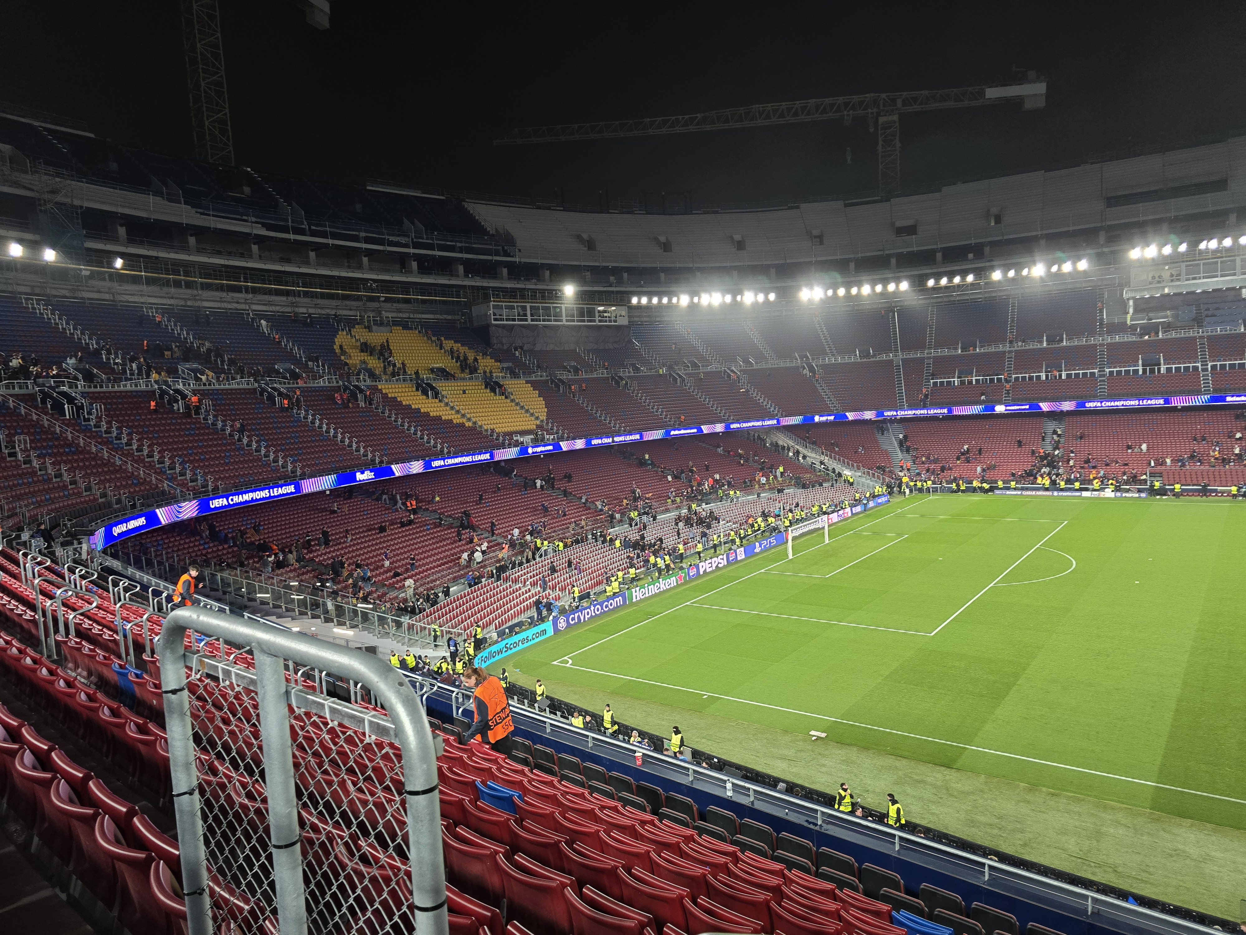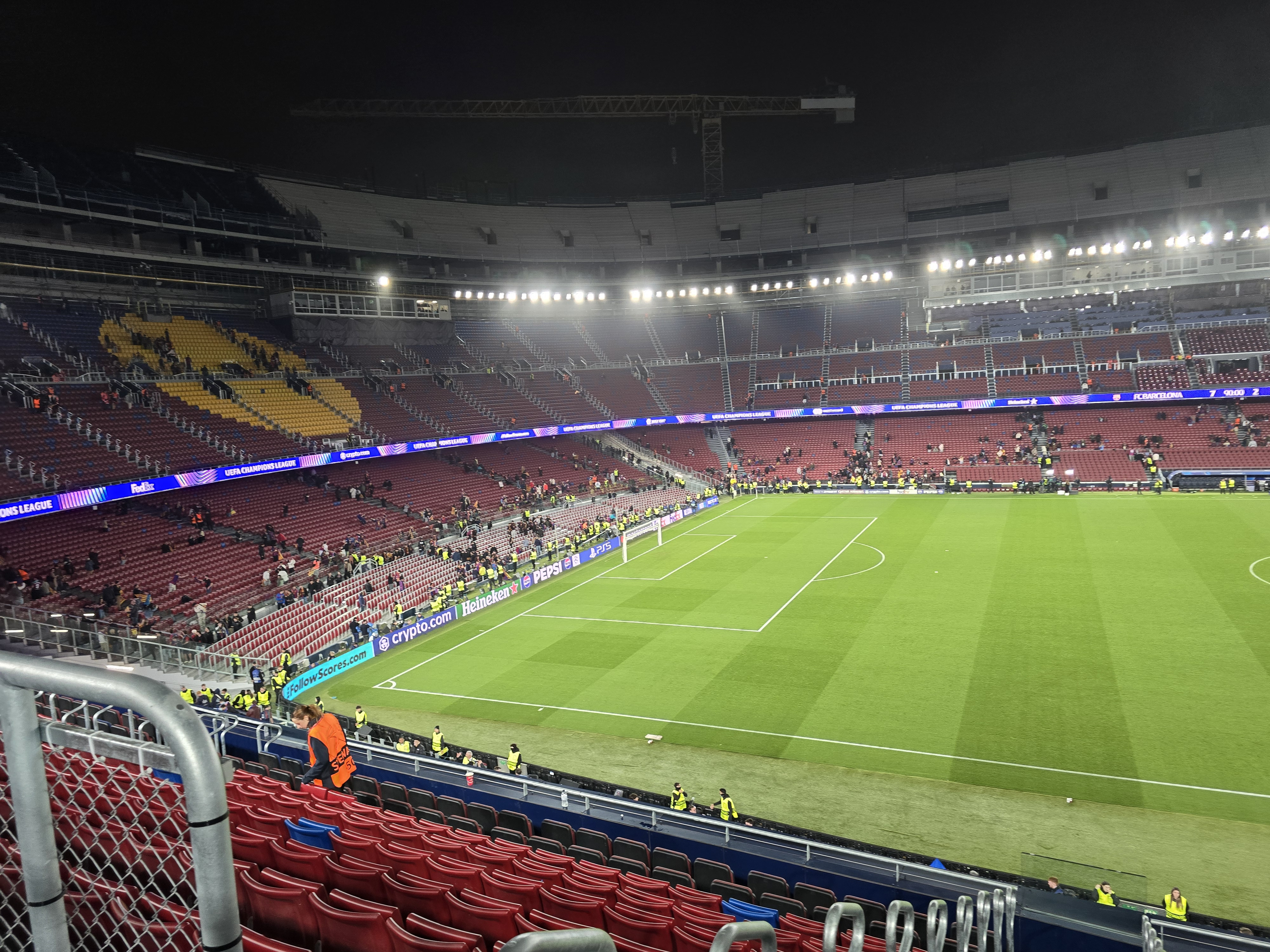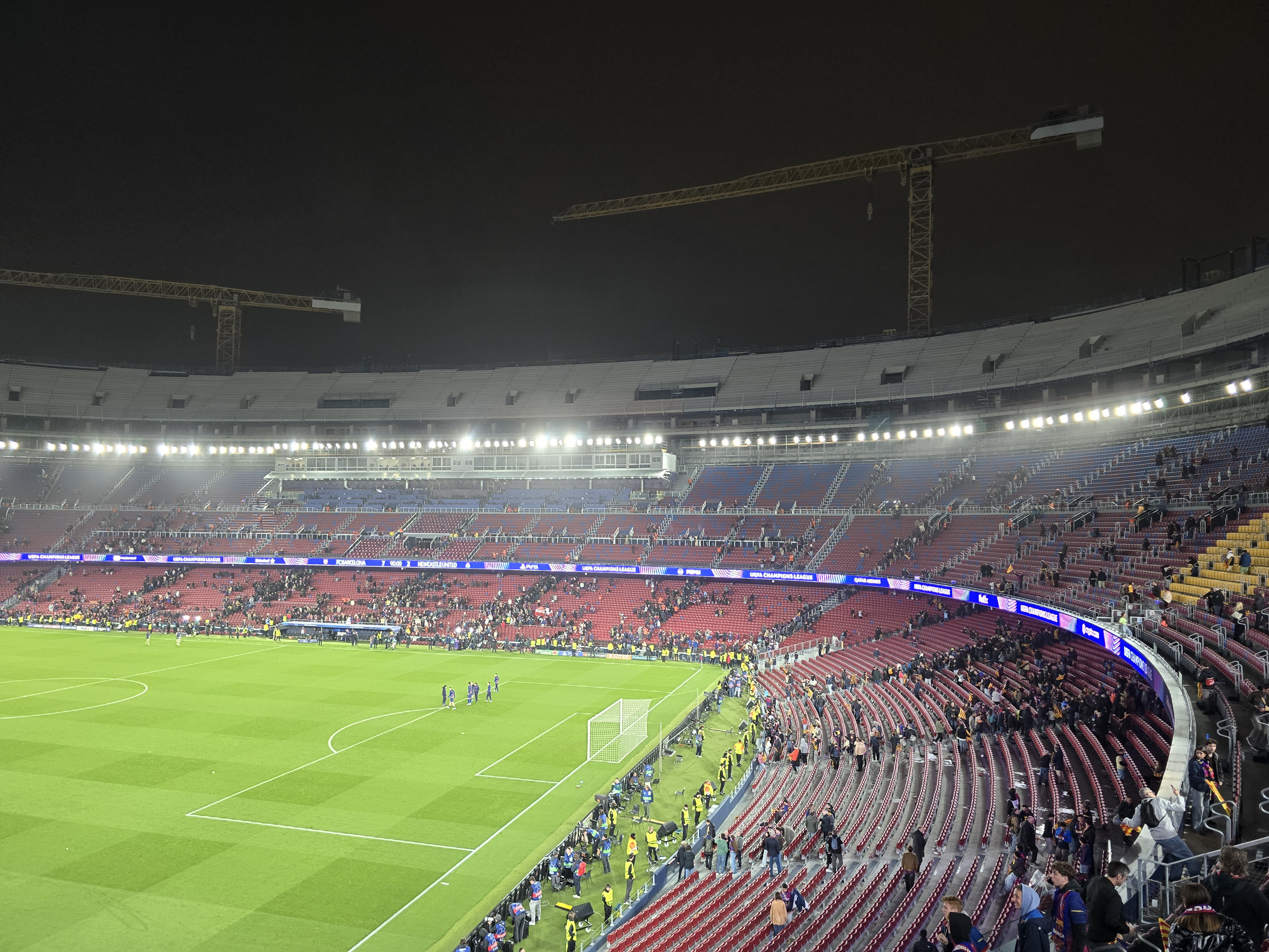 O parte a stadionului a fost modernizată, dar nu este finalizat încă. Din acest motiv, macaralele și materialele de construcție sunt în jurul arenei Camp Nou, și creează un ușor disconfort vizual.