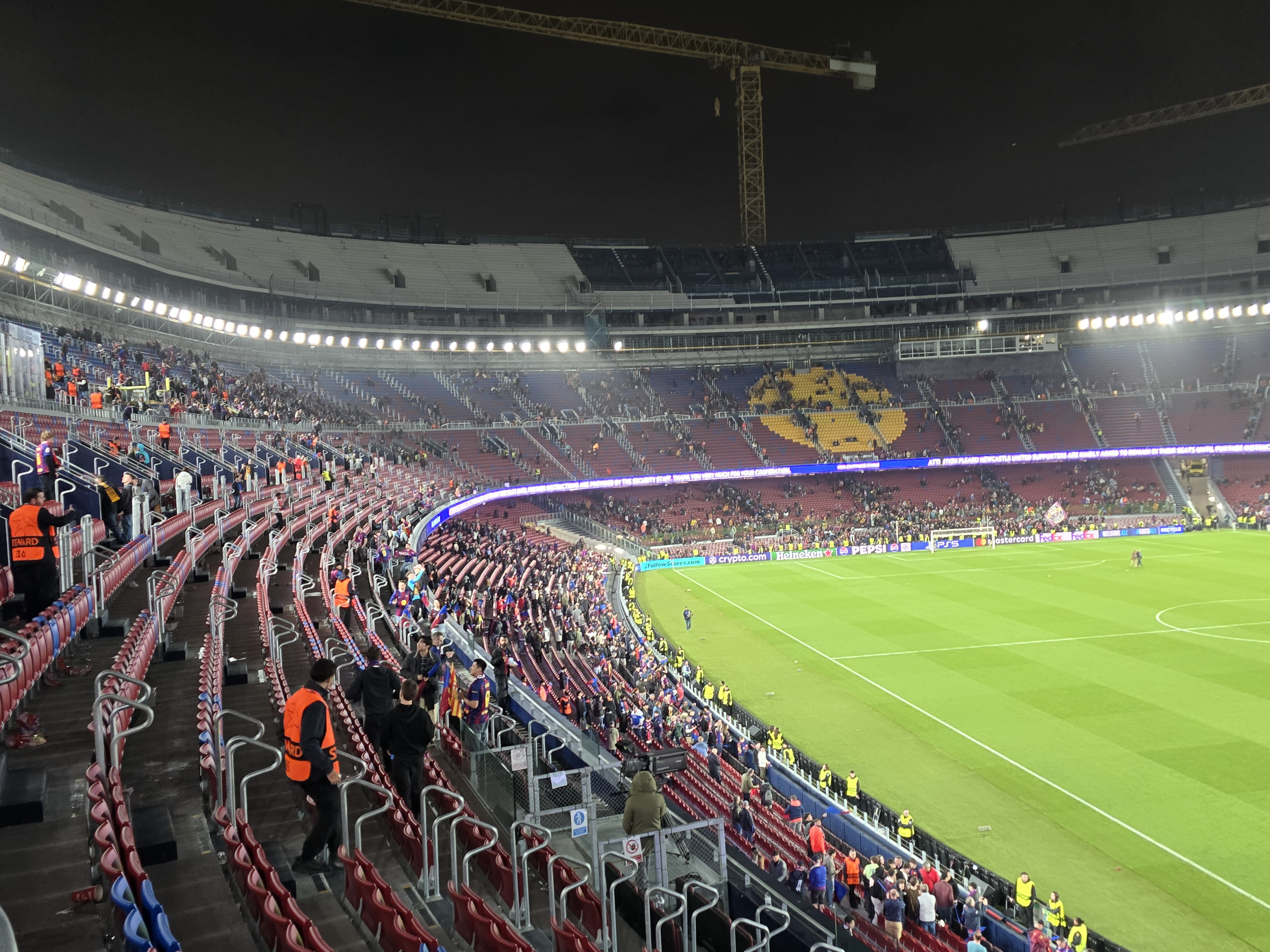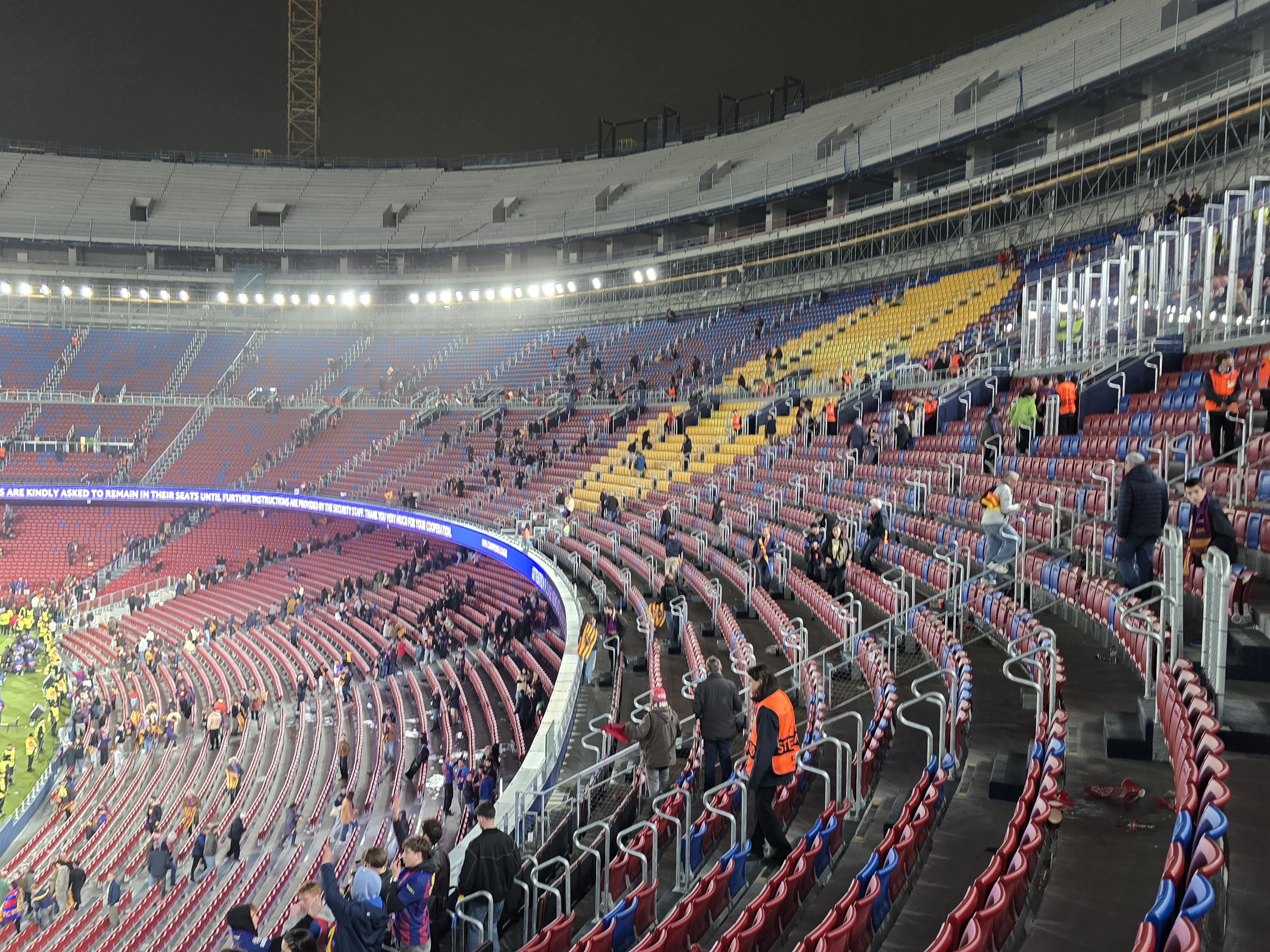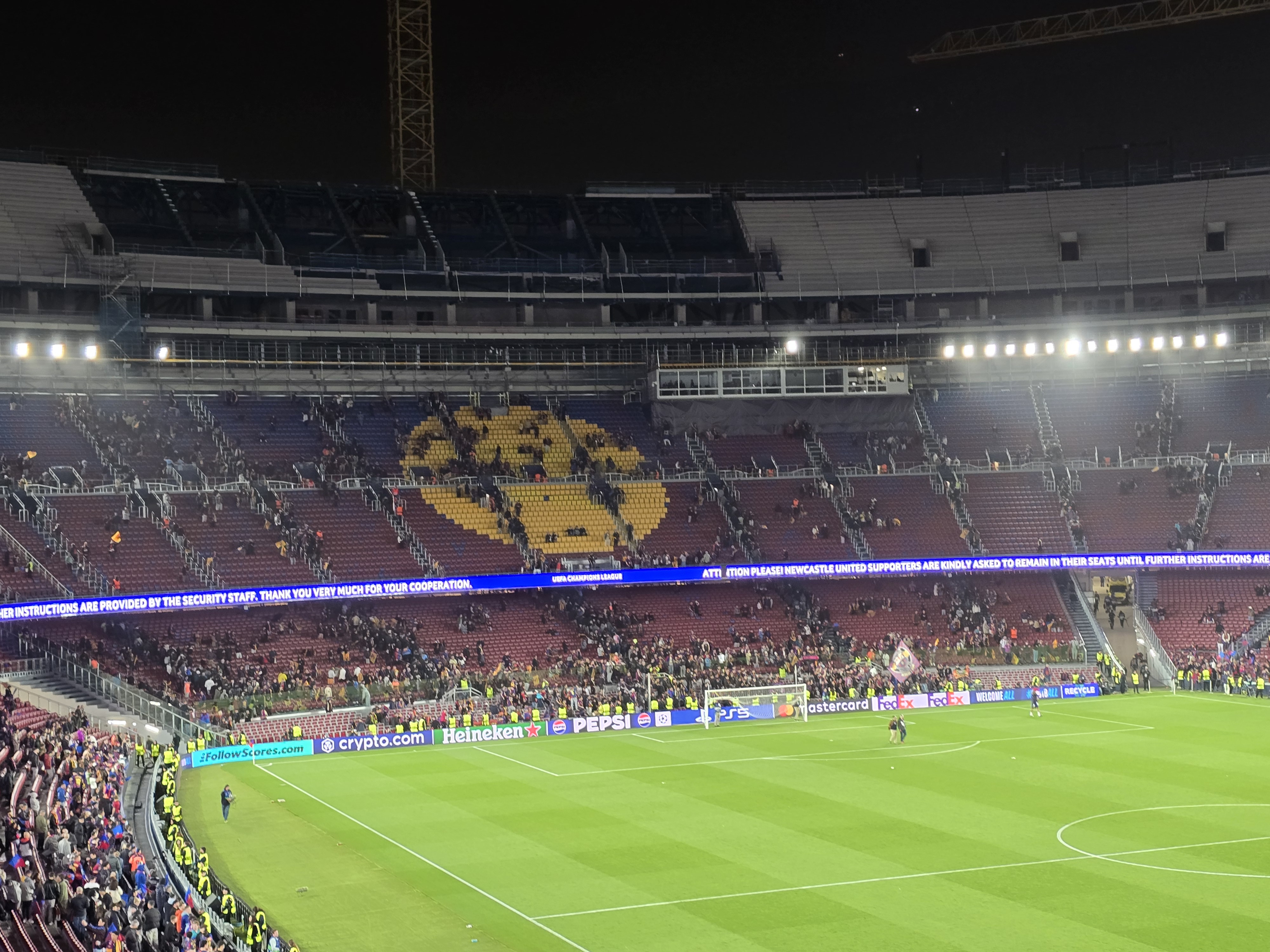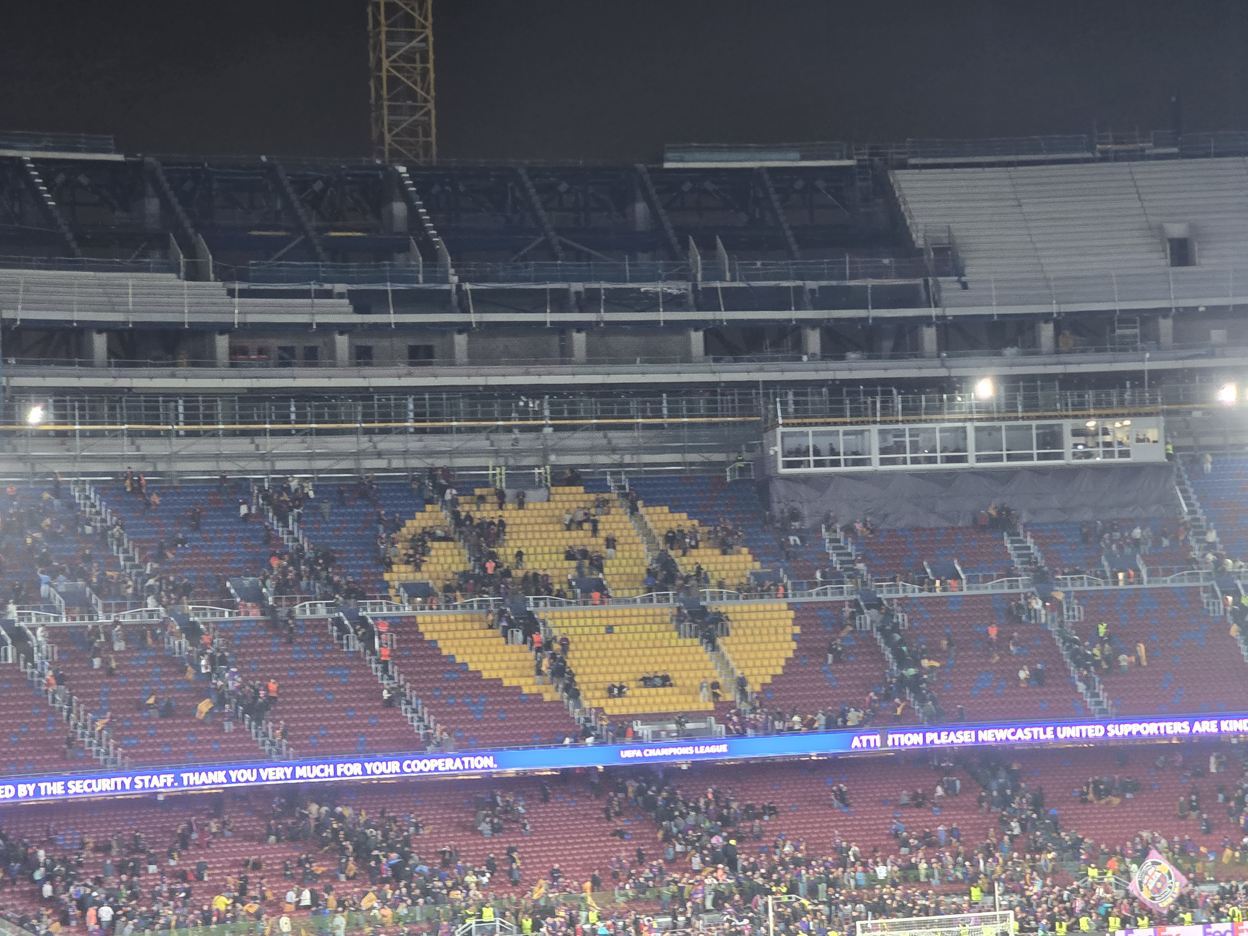 O parte a stadionului a fost modernizată, dar nu este finalizat încă. Din acest motiv, macaralele și materialele de construcție sunt în jurul arenei Camp Nou, și creează un ușor disconfort vizual.