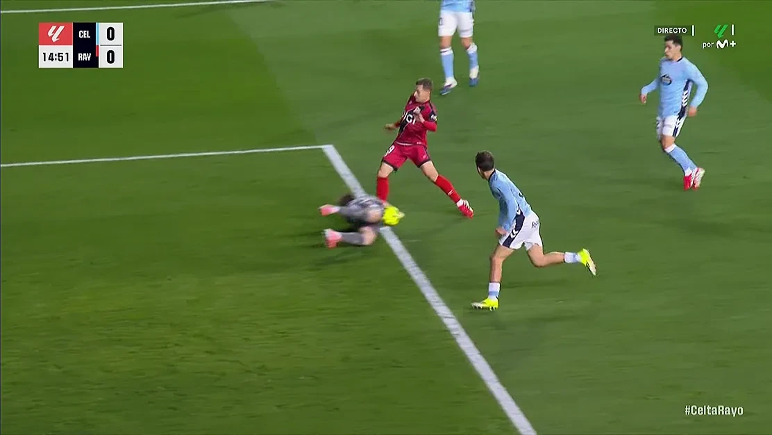 Radu a avut trei șuturi apărare, iar cea mai importantă ocazie a lui Rayo a fost consemnată în minutul 15, la scorul de 0-0. Goalkeeper-ul român a ieșit excelent pentru a-l bloca pe De Frutos, care a avut o importantă șansă de a deschide scorul.