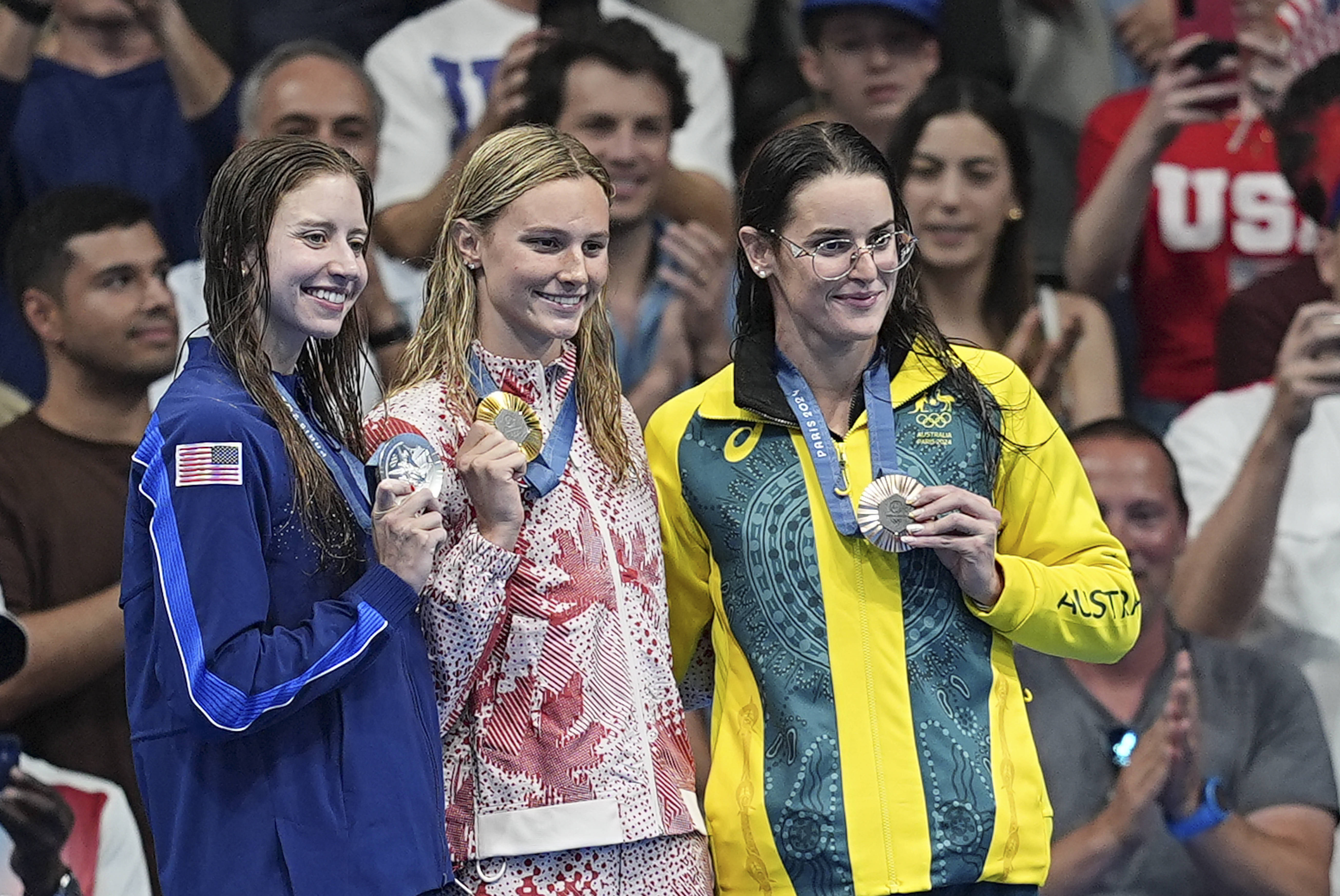 Summer McIntosh a cucerit la rândul ei trei medalii de aur la JO 2024 (200 m şi 400 m mixt, 200 m fluture), când avea doar 17 ani. De asemenea, ea a urcat pe treapta a doua a podiumului la 400 m liber.