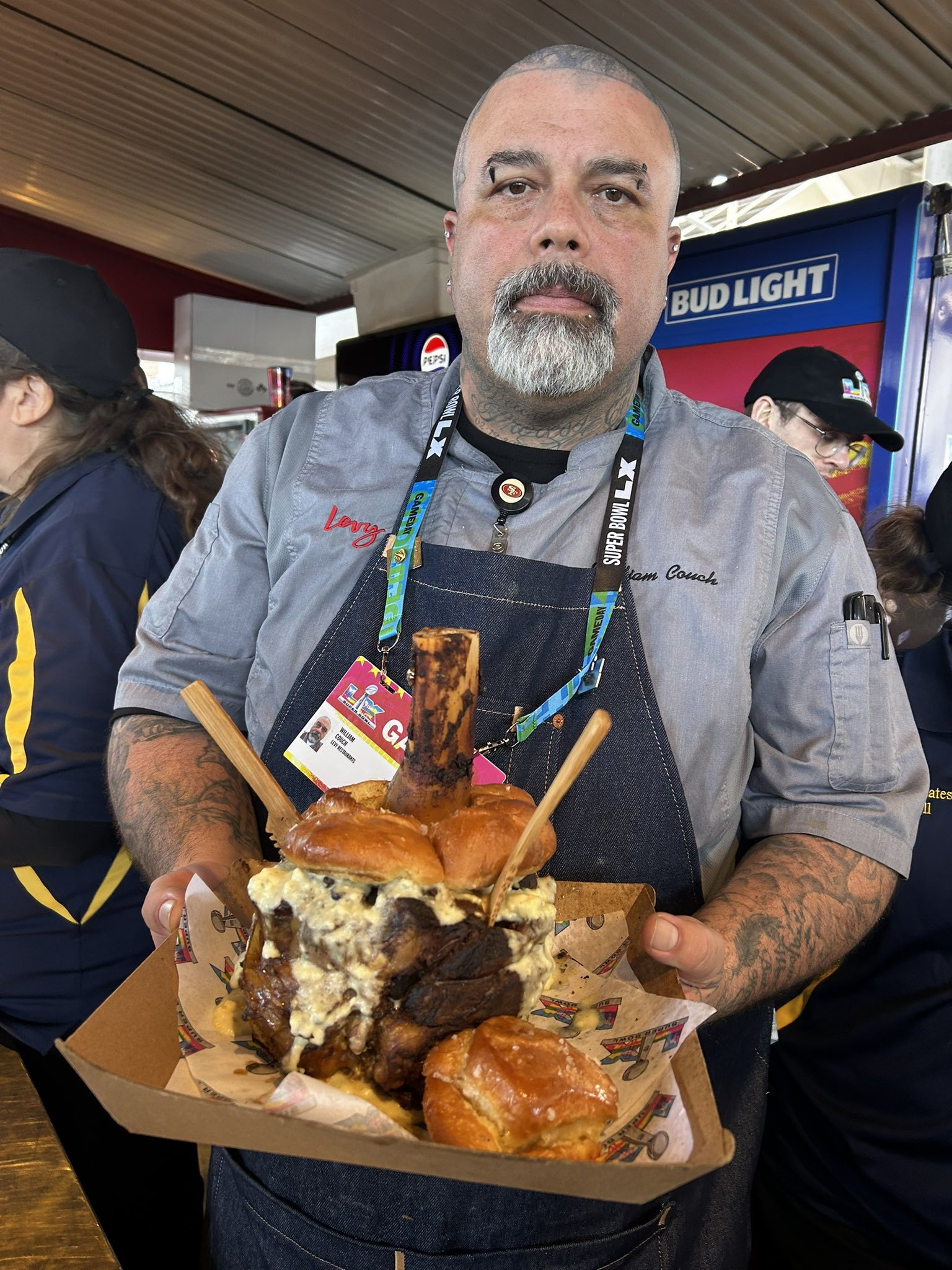 Conform Fox News, cei de la Levy au lucrat timp de doi ani la meniul Super Bowl LX. Una dintre atracțiile principale o reprezintă LX Hammer Burger, un burger de 1,5 kilograme, care costă aproximativ 180 de dolari. Este drept, preparatul este conceput pentru a fi împărțit între patru persoane.