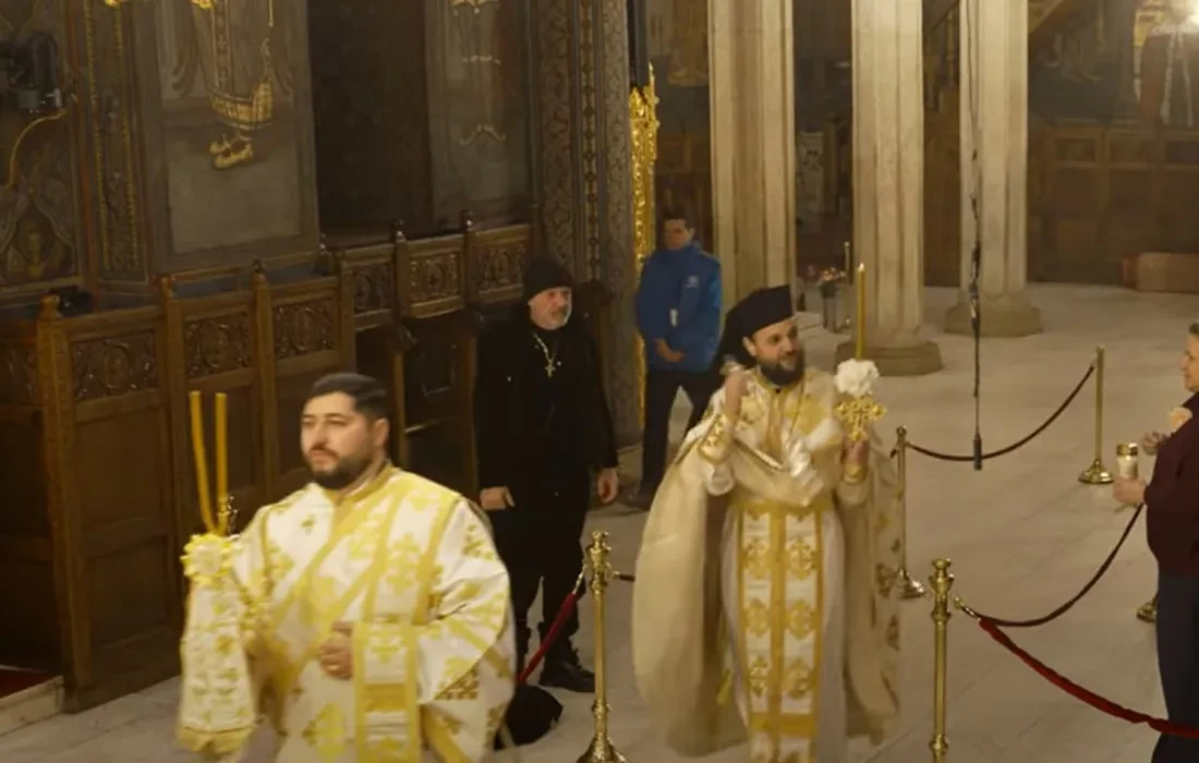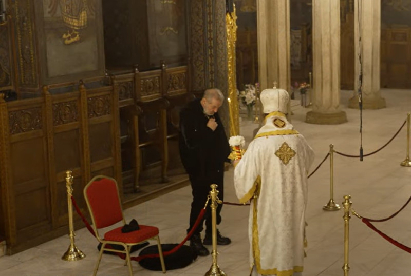 Ulterior, patronul liderului din Superliga s-a ridicat, și-a dat jos căciula și a continuat să asiste la slujbă, interacționând cu respect cu preoții prezenți la ceremonie.
