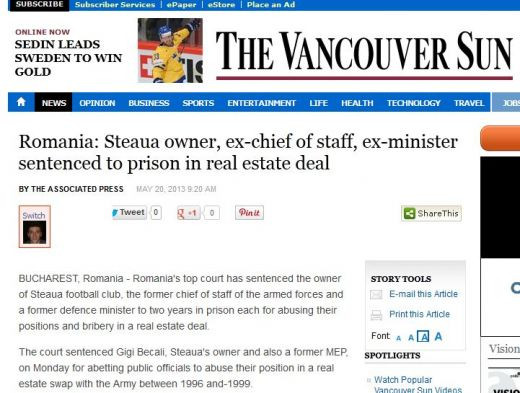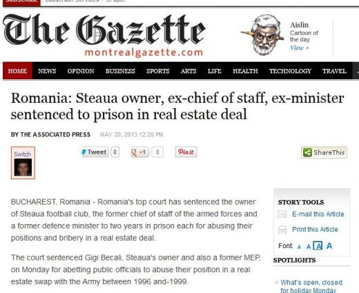 Ziua cea mai trista pentru Becali a starnit reactii imediate in presa internationala, din Australia, pana in SUA sau Canada.