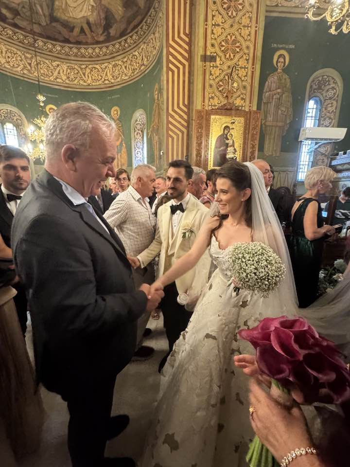 Spectacolul nu s-a oprit la ținute. Kira Hagi și proaspătul ei soț, Thomas Ferfelis, și-au făcut apariția la ceremonia religioasă de la Biserica Sfântul Visarion din Capitală într-un automobil de colecție. Cei doi au sosit la bordul unui Rolls-Royce Phantom IV din anii '50, o mașină de o raritate excepțională, care face parte din colecția impresionantă a lui Ion Țiriac.