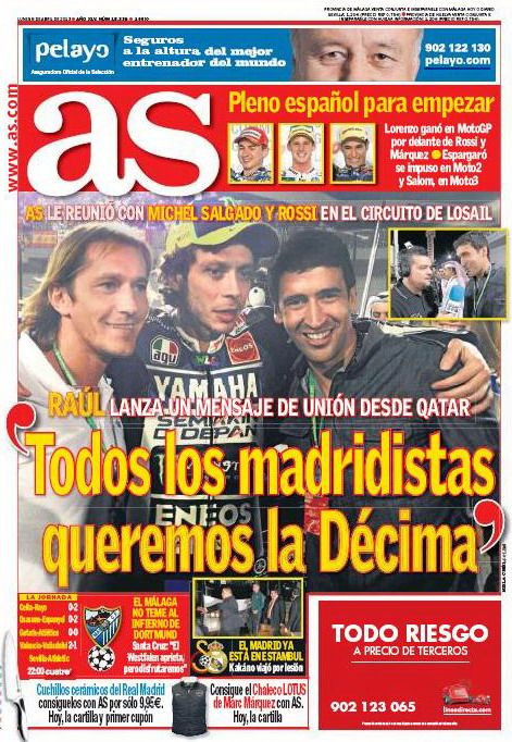 Intr-un interviu acordat ziarului AS, Raul le transmite suporterilor Realului sa creada in castigarea trofeului Ligii Campionilor: "Toti madrilenii, uniti pentru 'Decima' (al 10-lea trofeu)".