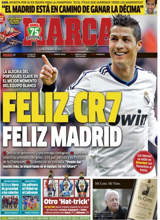 ►Cotidianul Marca publica un amplu interviu cu Raul, in care fostul star al Realului spune ca toti suporterii madrileni trebuie sa spere la castigarea trofeului Champions League.