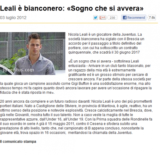 Leali a fost cumparat cu 3,8 milioane de euro de la Brescia si a semnat un contract pe 5 sezoane.