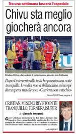 Seful Departamentului de Neurochirurgie de la Institutul Besta din Milano, Giovanni Broggi, a declarat, pentru Gazzetta dello Sport, ca fundasul Cristi Chivu va fi indisponibil maxim trei luni si va putea juca apoi fara casca de protectie.
