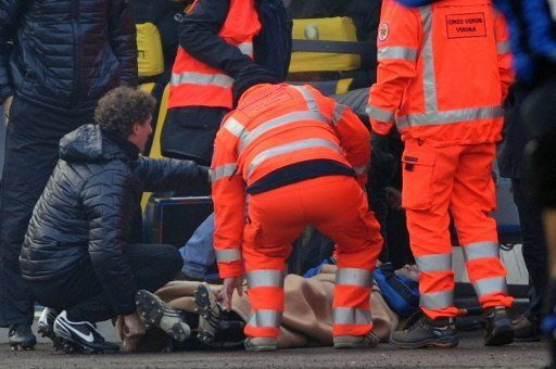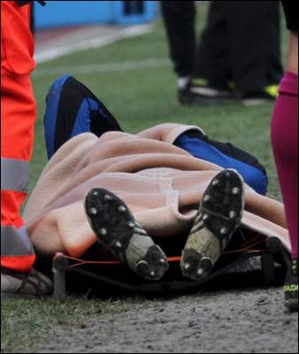 Internationalul roman a fost scos de pe teren pe targa si a fost inlocuit de Marco Materazzi, romanul fiind transportat cu ambulanta la spitalul din Verona.