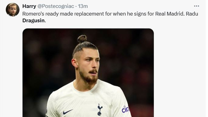 "Înlocuitorul lui Romero a fost găsit deja: Drăgușin" - a notat un suporter al lui Spurs pe X.