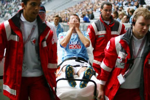 Nemtii publica imagini socante cu Lovin in lacrimi dus pe targa in afara terenului. Verdictul e groaznic: fostul stelist va sta 6 luni pe bara din cauza acestei accidentari.