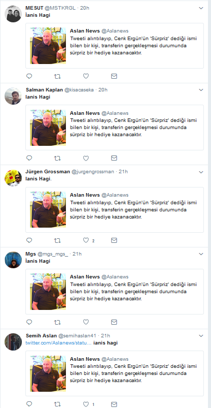 Cenk Ergun, director sportiv al Galatei, le-a promis o surpriza suporterilor. Cel mai probabil, oficialul se referea la transferul lui Fellaini. Atat Manchester United, cat si jucatorul, si-au dat acordul, iar mutarea poate fi oficializata in urmatoarele zile. Fanii ar fi preferat insa ca stirile sa fie altele si noutatea sa fie Ianis. :)
