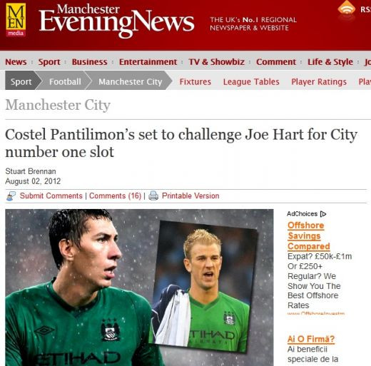 Manchester Evening News scrie ca portarul roman i-a impresionat pe antrenorii lui City, care sunt siguri ca e pregatit in orice moment sa faca fata presiunii unui joc important!