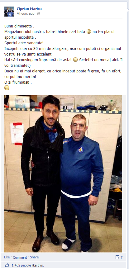Vrea sa ii convinga sa faca sport cat mai mult pentru a nu ajunge in situatia magazinerului de la Getafe, a carui silueta e departe de ideal. Marica a postat o imagine din vestiar pe net si i-a rugat pe fanii lui sa-i dea un sfat amicului sau plinut. :)